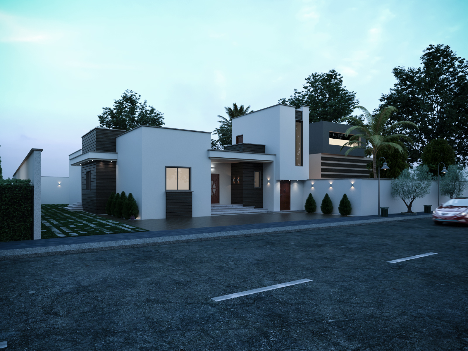 غرفة نوم رئيسية + حمام + غرفتين نوم